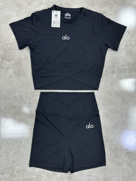 ست ورزشی کراپ و شورتک زنانه پارچه تنفسی برند alo