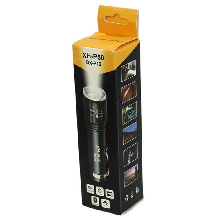 چراغ قوه UV زوم دار با چراغ بغل COB مدل XH-P50