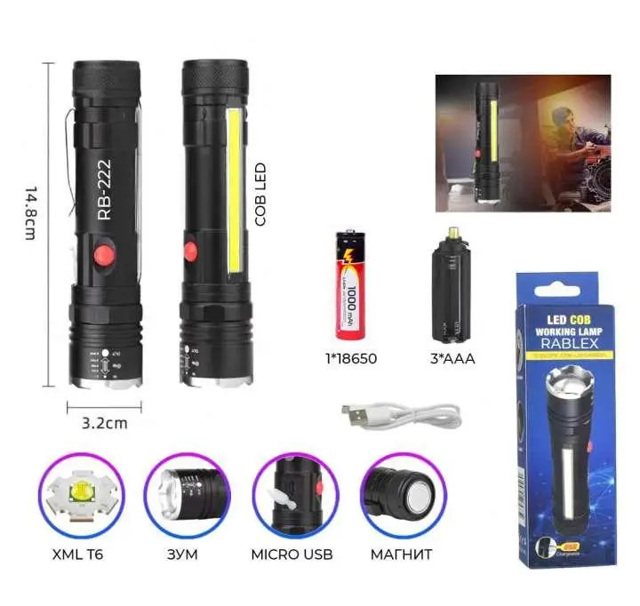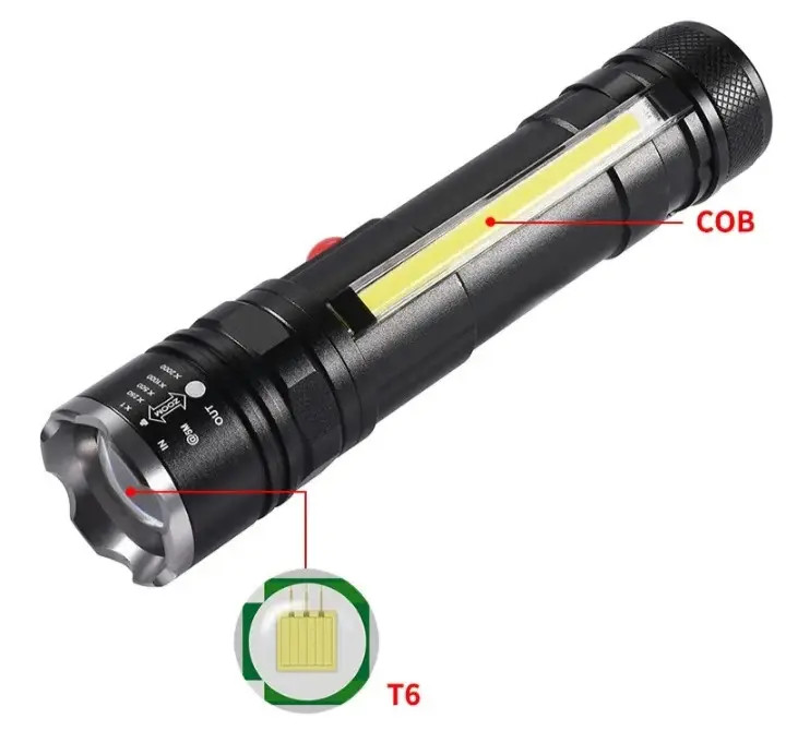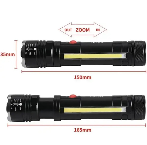 چراغ قوه LED COB T6-26 قابل شار 4 حالته