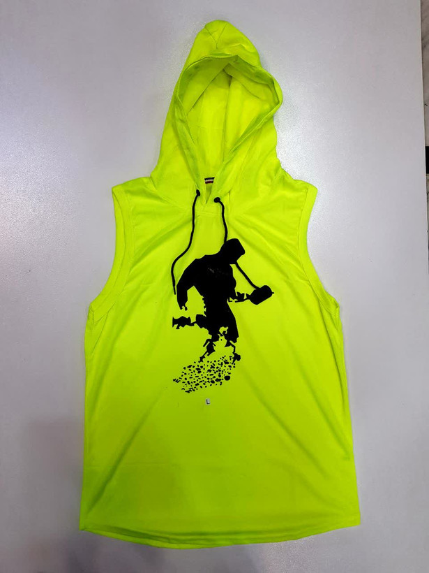 رکابی کلاهدار بدنسازی طرح دمبل در 4 رنگ پارچه تنفسی