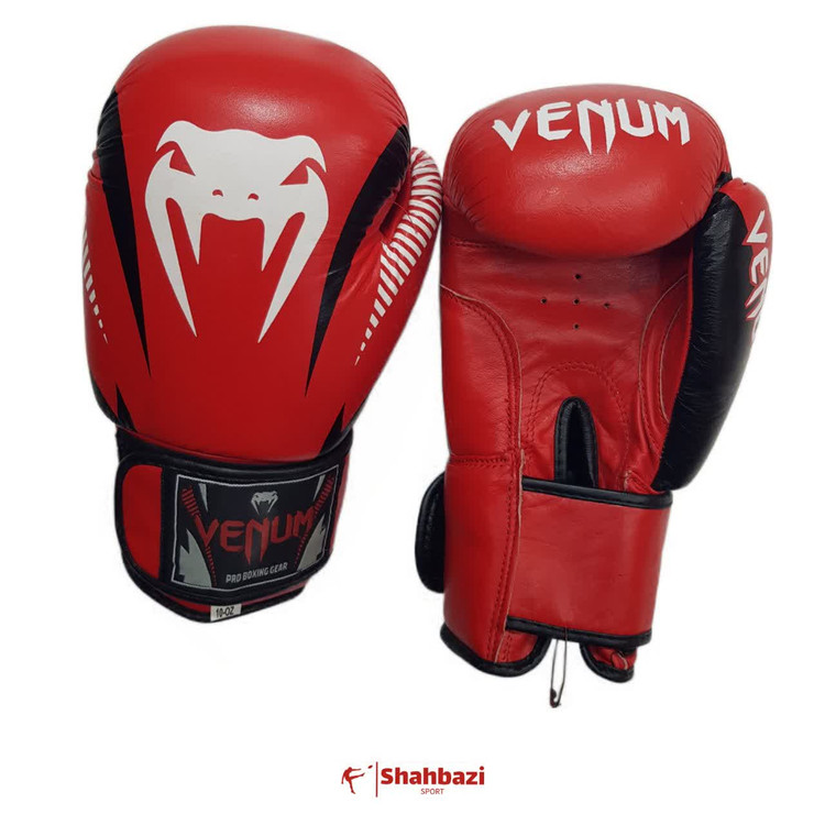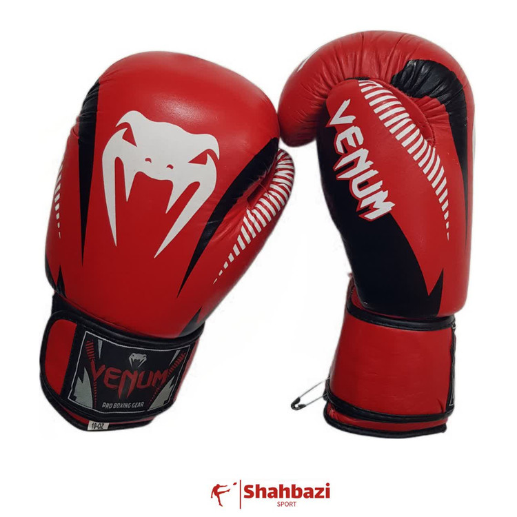 دستکش بوکس چرمی پاکستان-برند ونوم-با دوخت اعلا رنگ قرمز شماره 10
