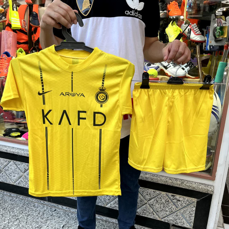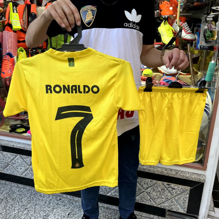 کیت ورزشی (فوتبال) تیم النصر-رونالدو-سایزبندی 1 الی 4- پارچه فلامنت