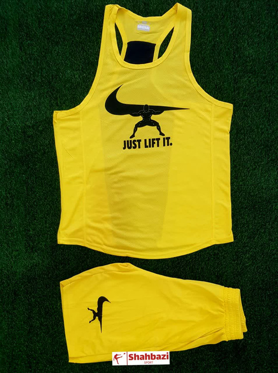 ست رکابی شلوارک بدنسازی just do it-پارچه زنبوری در 6 رنگ مختلف